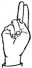 На ћирилици написано НИНА ДОНЧИЋ састоји се из 10 слова [?]. Исписано ћириличном једноручном азбуком за глувонеме: